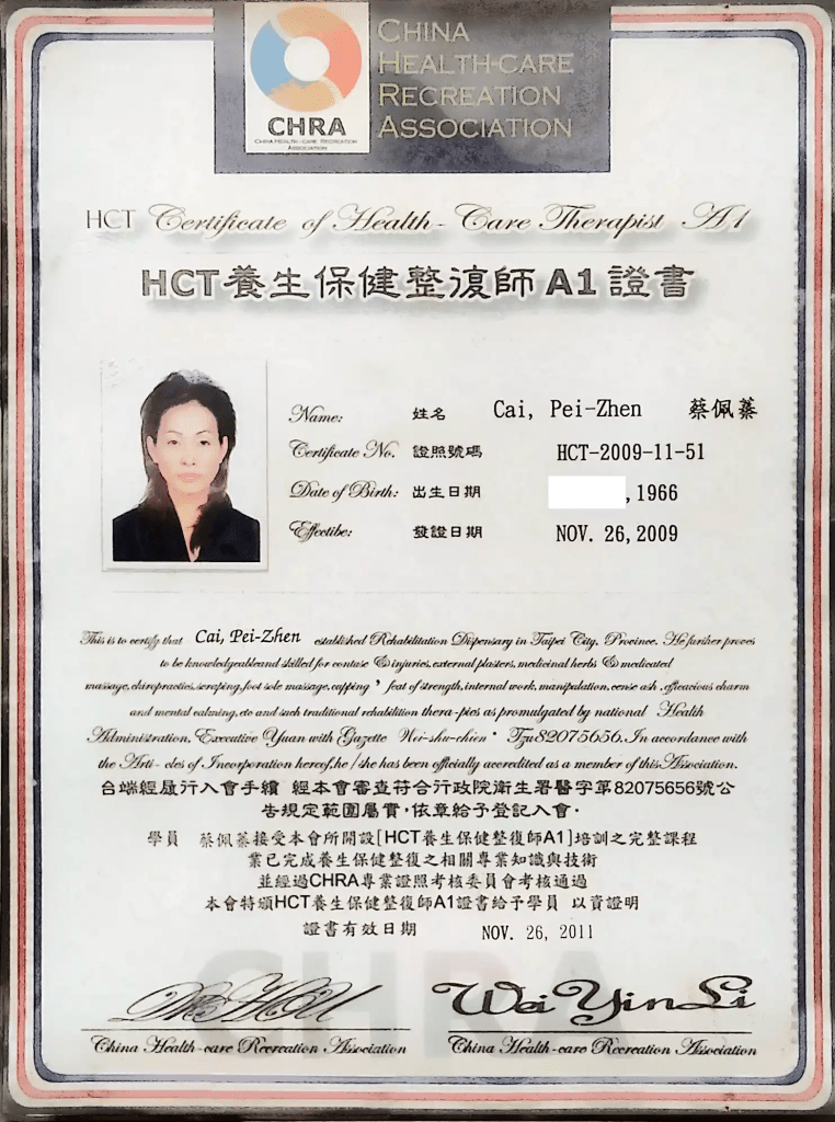 我是蔡佩蓁:1966年出生於中國福建晉江,國小畢業後跟著父母全家移居澳門,22歲又全家移民定居在台灣生活,剛到台灣時嘗試多種工作,在28歲開始接觸美容保養品,30歲才開始學習美容美體技能,多方面全方位學習健康產業⋯⋯。因為我是從小離鄉背井的囡仔,有一顆不認輸的心,所以30年來埋頭苦幹、努力學習美容保養專業技能,用心服務客戶。